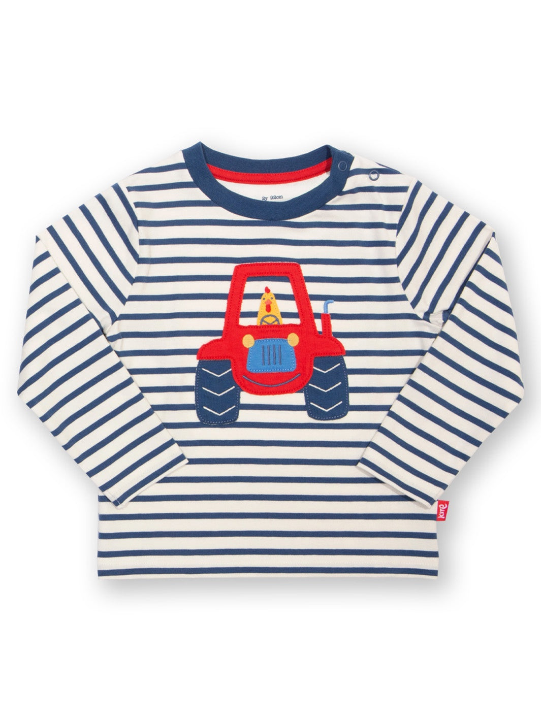 Every tractor needs a safe pair of hands like Farmer Cluck Cluck, right?! This fab applique t-shirt with Kite's farmer behind the wheel of his trusty red tractor, all set against classic navy and white stripes is a tractor-tastic favourite in the making!