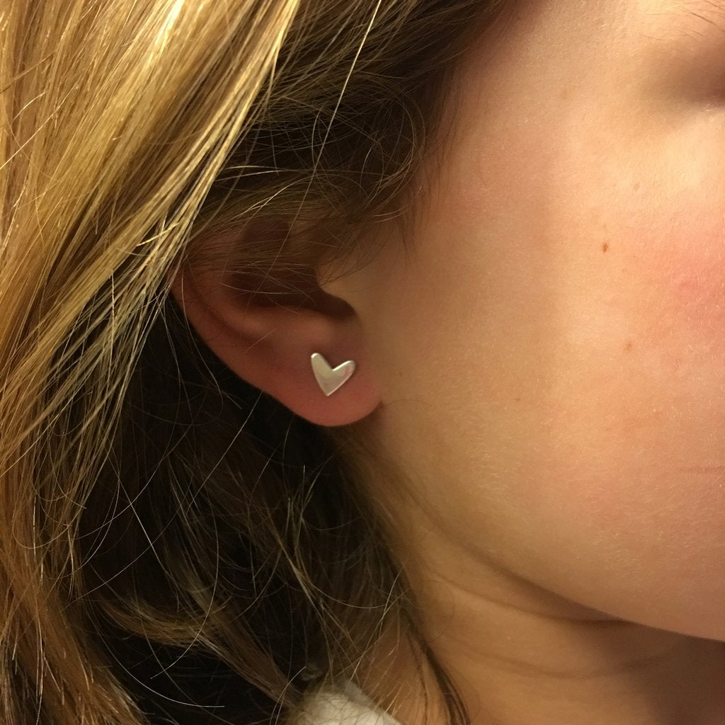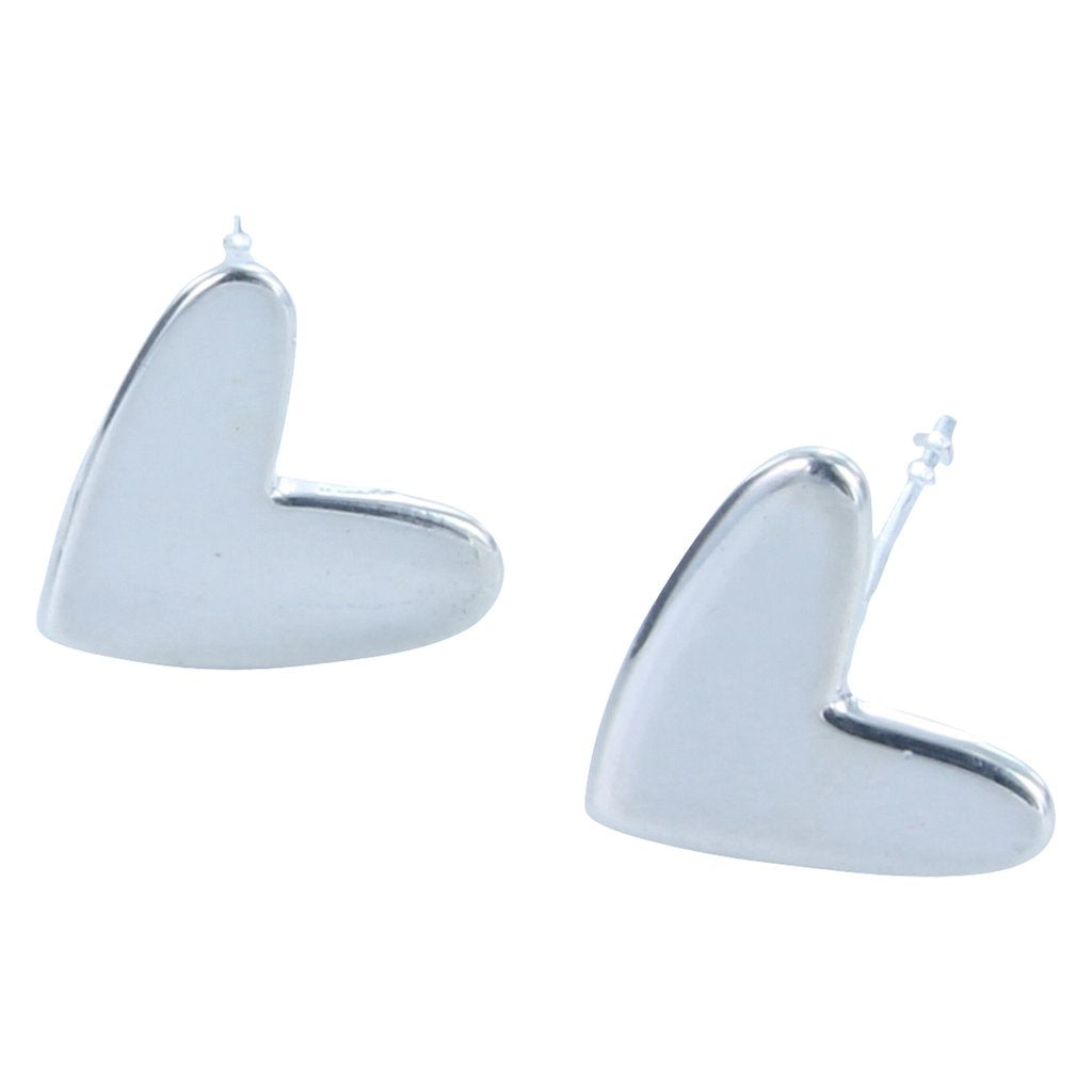 A beautifully contemporary sterling silver heart shaped pair of stud earrings with an eye catching high shine finish. Gorgeous. Perfect for all, the young and the young at heart! To complement the earrings there is also a matching necklace, available in all 3 finishes, all silver, 18k rose or gold vermeil (plated). 6 x 8mm.