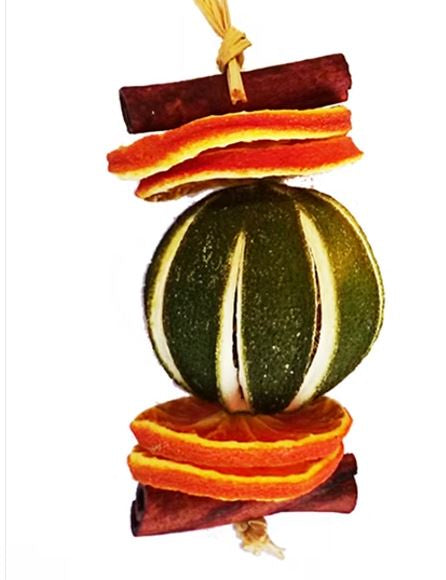 This unique and fragrant decoration is made from a whole dried lime, cinnamon sticks and orange slices; scented with ‘Christmas in a Bottle’ oil. Lovingly crafted by Jormaepourri, an independent family business that specialises in decorations using dried fruits, flowers, spices, and fragrances.